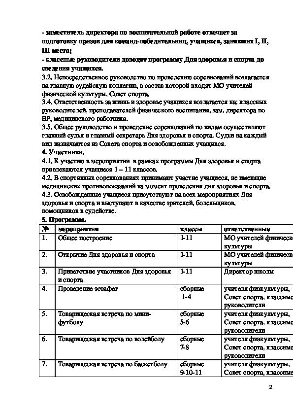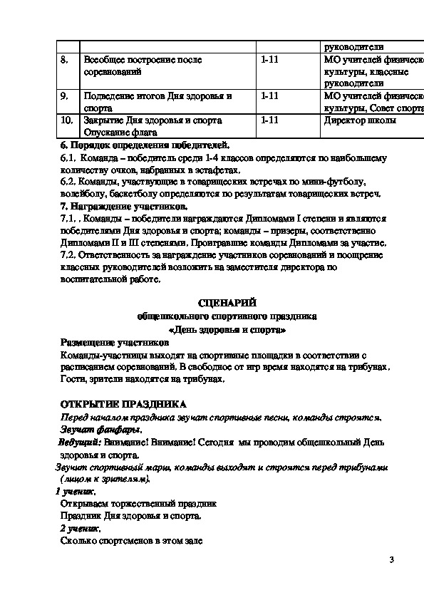 3.1. Общее руководство по подготовке и проведению Дня здоровья и спорта