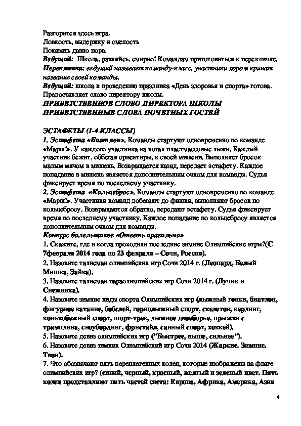 Сценарий общешкольного спортивного праздника «День здоровья и