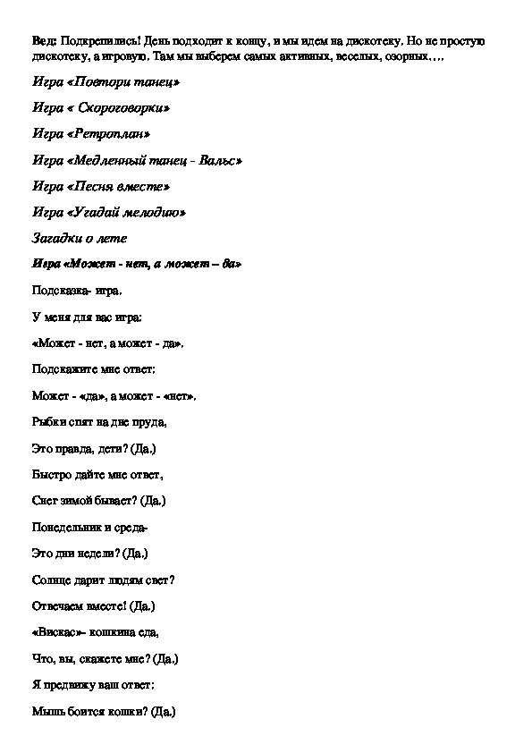 дискотеку, а игровую. Там мы выберем самых активных, веселых, озорных….
