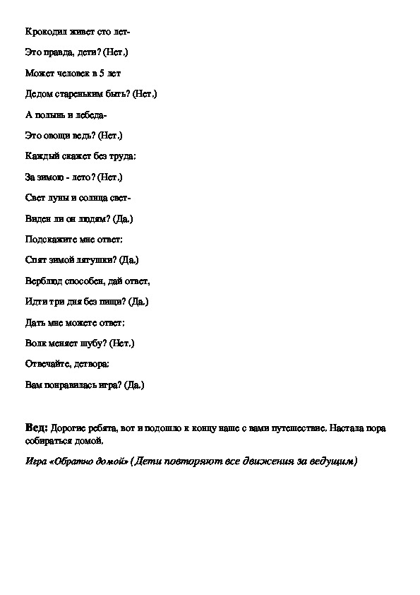 Игра «Обратно домой» (Дети повторяют все движения за ведущим)