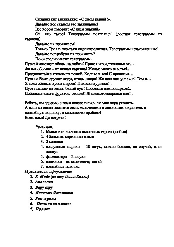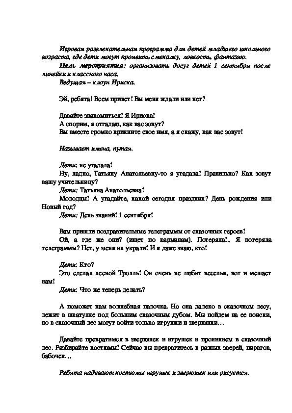 7. волшебная палочкаСценарий игровой программы к 1 сентября Путешествие в волшебный лес