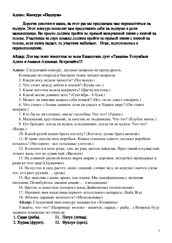 Адиль: Следующий конкурс, трудные вопросы на премудрость.