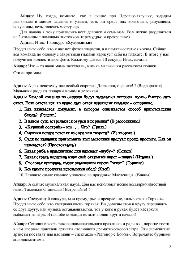 Айдар: Следующий наш конкурс называется «Хозяюшка»