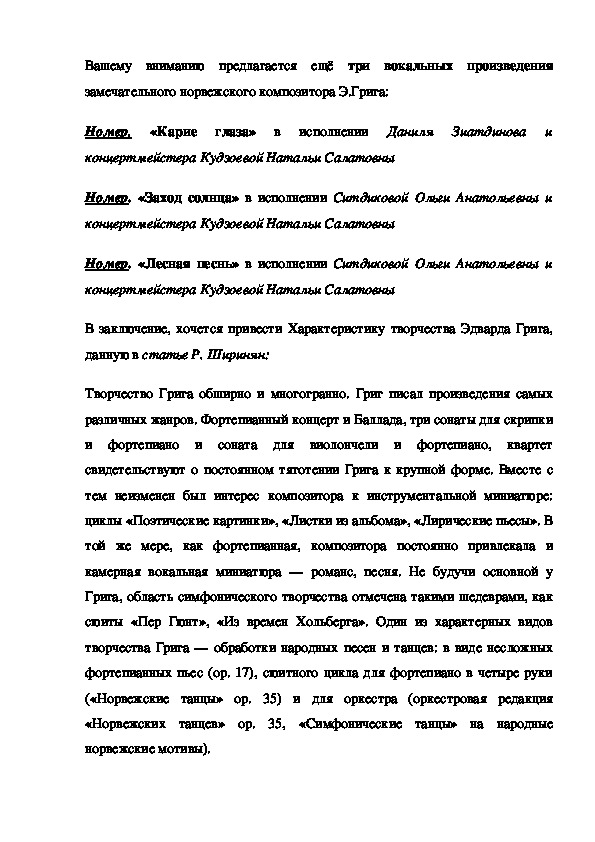 В заключение, хочется привести Характеристику творчества Эдварда Грига,