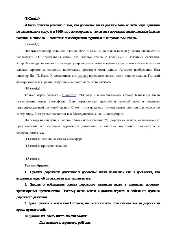 Ведущий: Ребята, мы сегодня много говорили о дорожных знаках. Я надеюсь, вы их