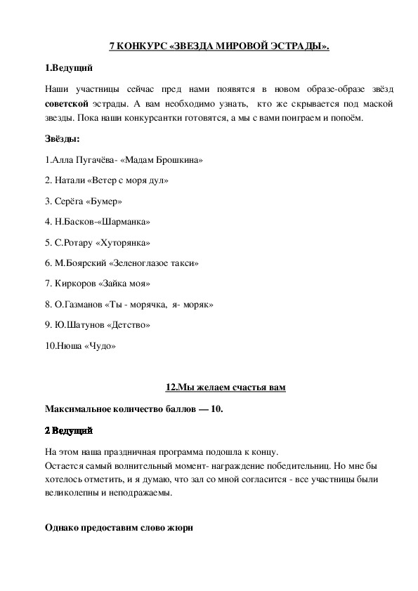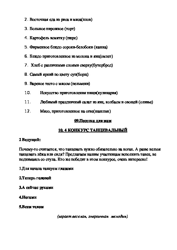 Сценарий развлекательной игровой программы