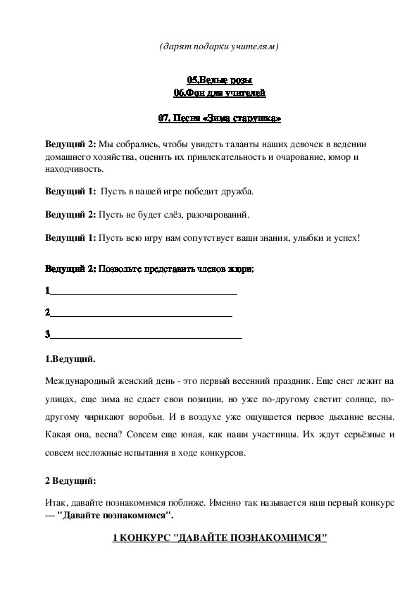 Однако предоставим слово жюри1 Ведущий