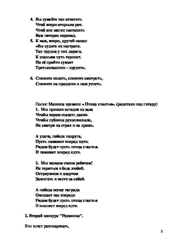 Песня: Машина времени « Птица счастья». (родители под гитару)