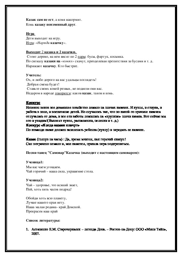3. Астапенко Г.Д. Быт, обычаи, обряды и праздники донских казаков. XVII XX вв. –