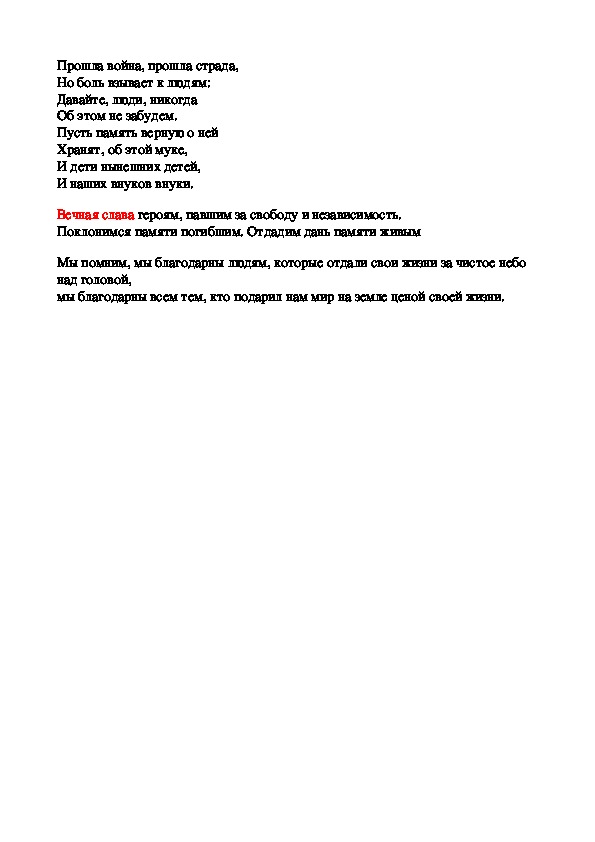 мы благодарны всем тем, кто подарил нам мир на земле ценой своей жизни.