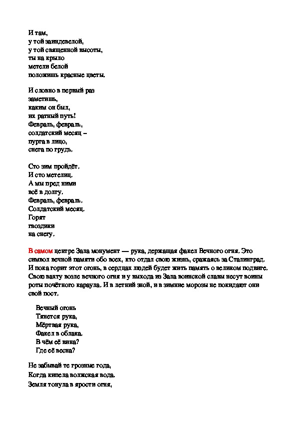 символ вечной памяти обо всех, кто отдал свою жизнь, сражаясь за Сталинград.