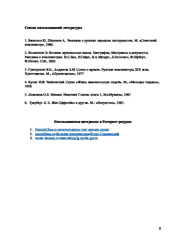 3 .Григорович В.Б., Андреева З.М. Слово о музыке. Русские композиторы XIX века.