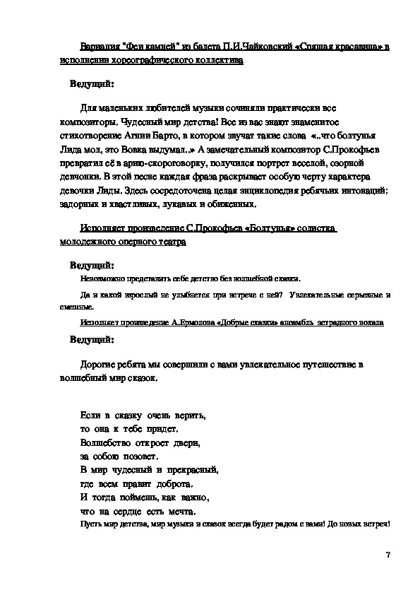 Пусть мир детства, мир музыки и сказок всегда будет радом с вами! До новых встреч!