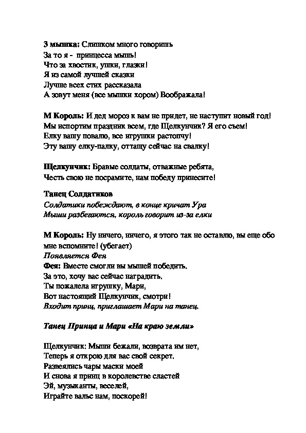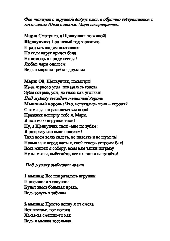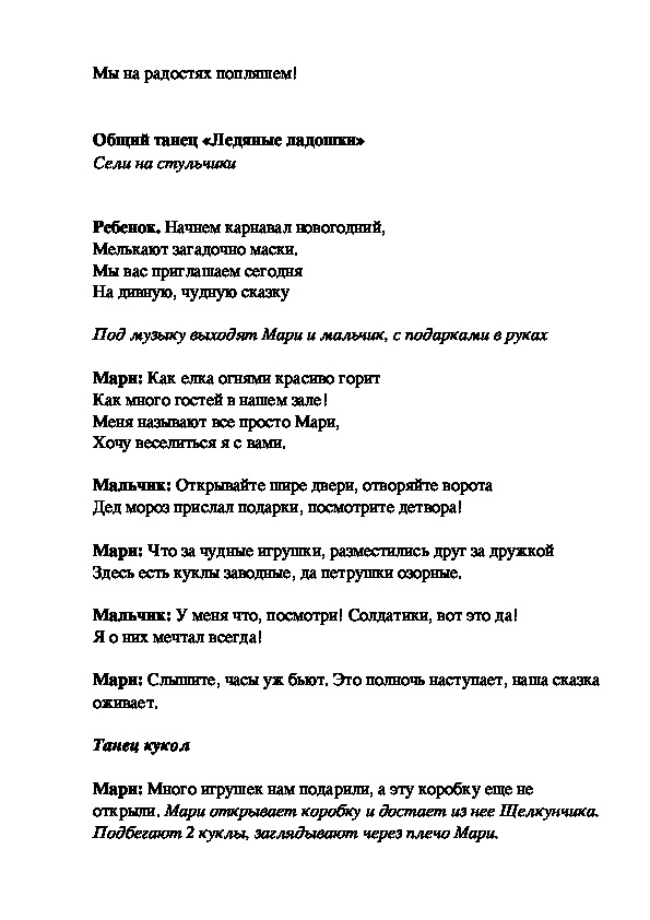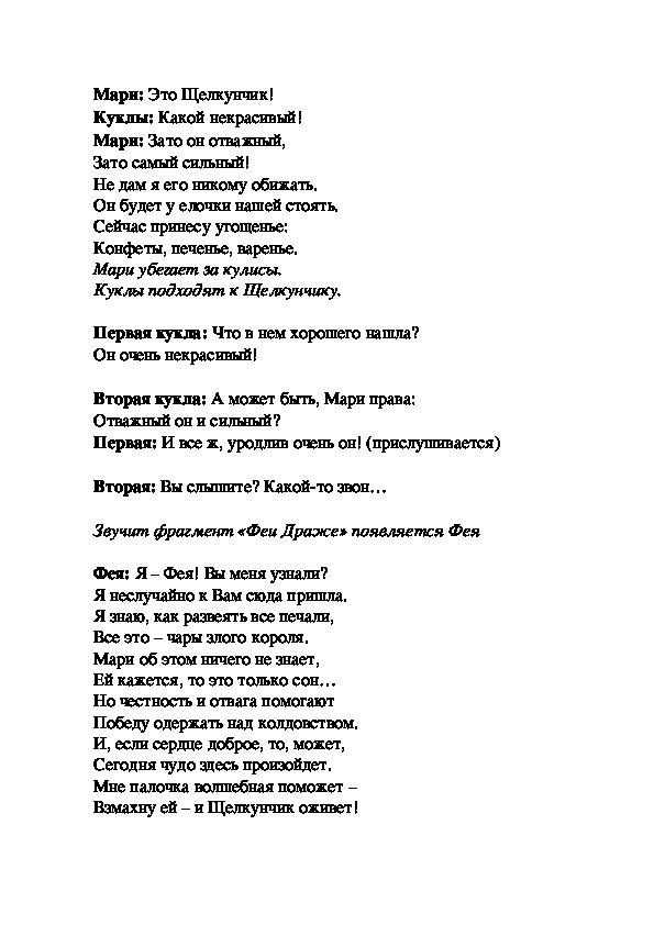 Мари: Слышите, часы уж бьют. Это полночь наступает, наша сказка