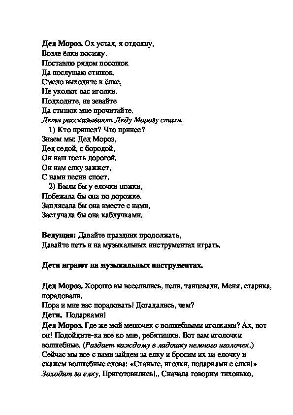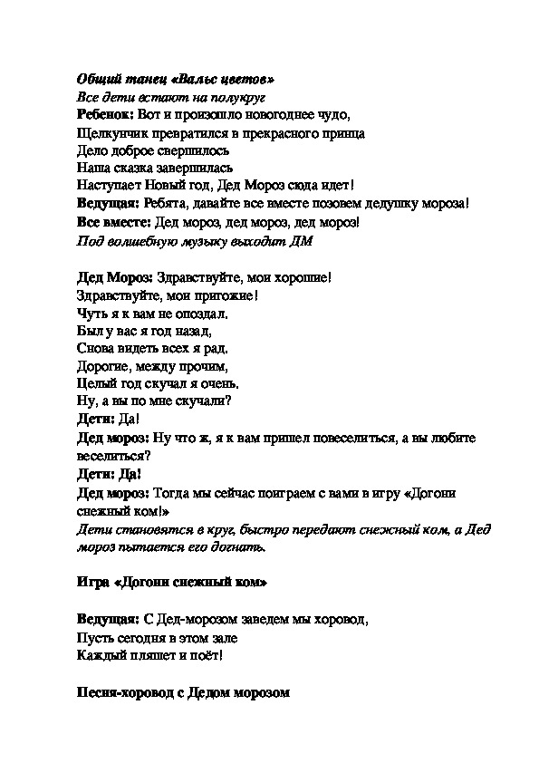 посохом. В то время, когда дети и Дед Мороз говорят волшебные