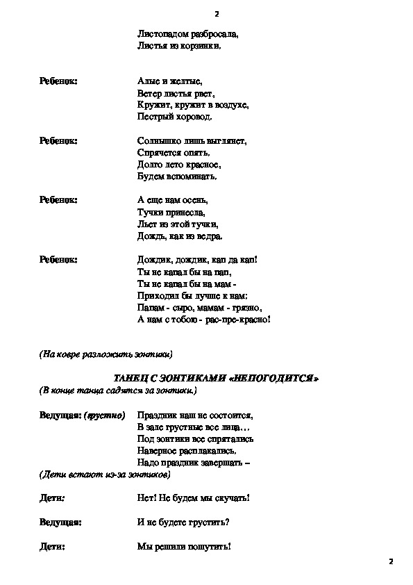 (На ковре разложить зонтики)