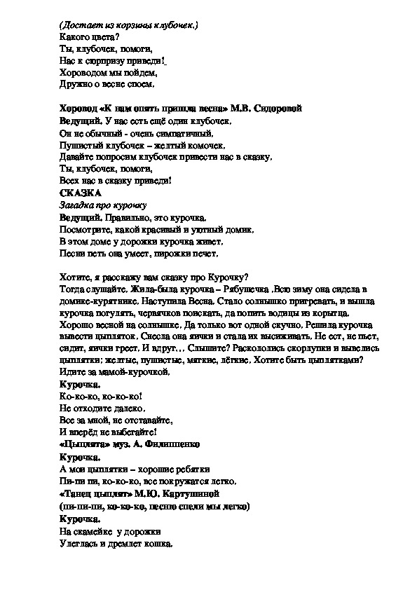 А теперь пора цыпляткам снова превращаться в ребяток, а ты, Курочка,