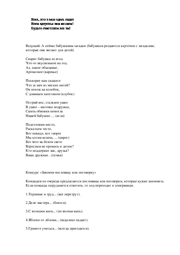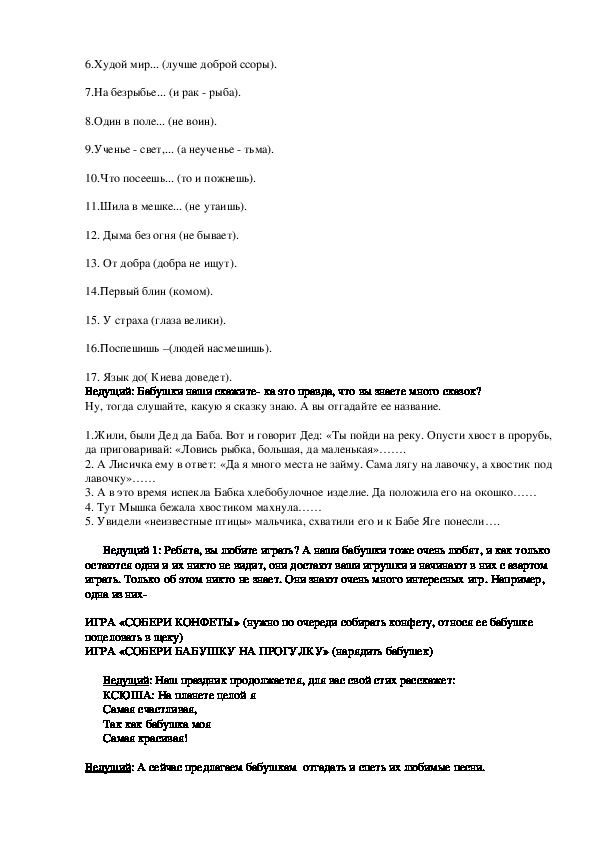 Ведущий: Здравствуйте, уважаемые бабушки!