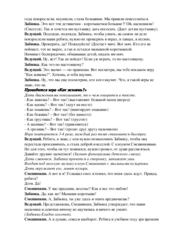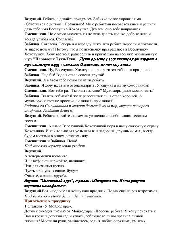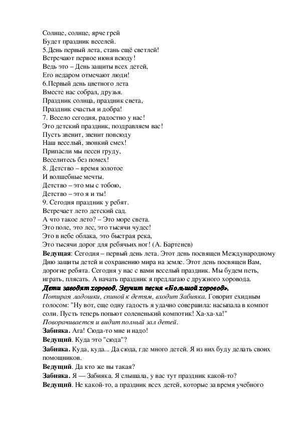 Сценарий летнего праздника для детей дошкольного возраста «1 июня