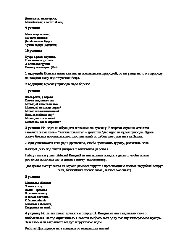 1 ведущий: Если мы хотим помочь нашей планете, нашей больной природе, должны знать