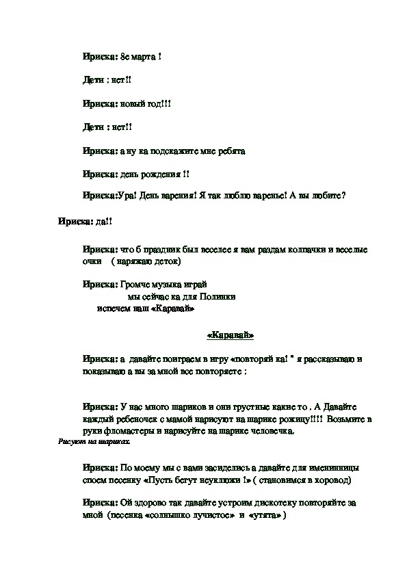 мной (песенка «солнышко лучистое» и «утята» )Ириска: А я тут захватила воздушные огонечки давайте с вами их