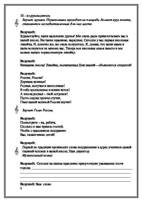 Звучит музыка. Классы выстраиваются на линейку. Под фанфары выходит ведущий