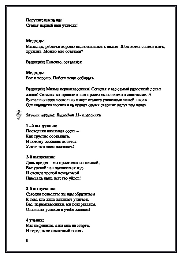 первоклассникам. А проводит их наш 11 класс. Уверенно шагайте в страну
