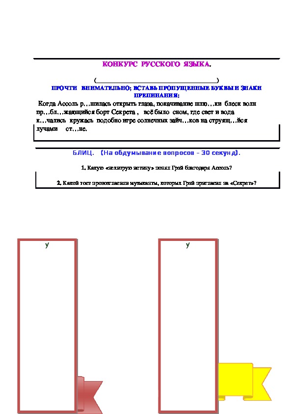 получают для работы отрывок из «Алых парусов», если в нём есть ошибки, пожалуйста,