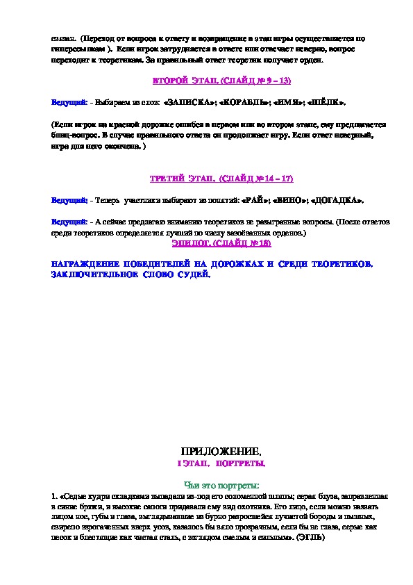 Сценарий литературной игры