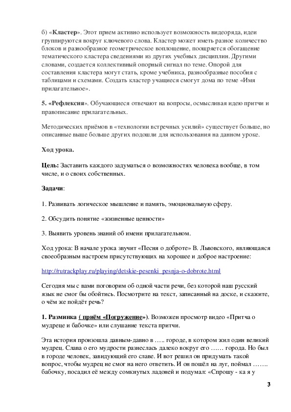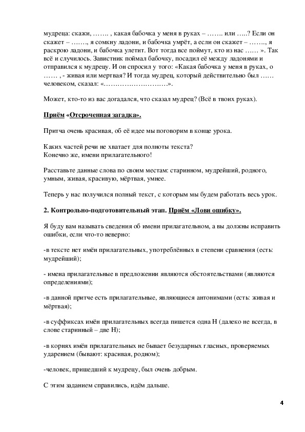 текстом притчи и расстановка прилагательных в тексте. Педагогические приемы