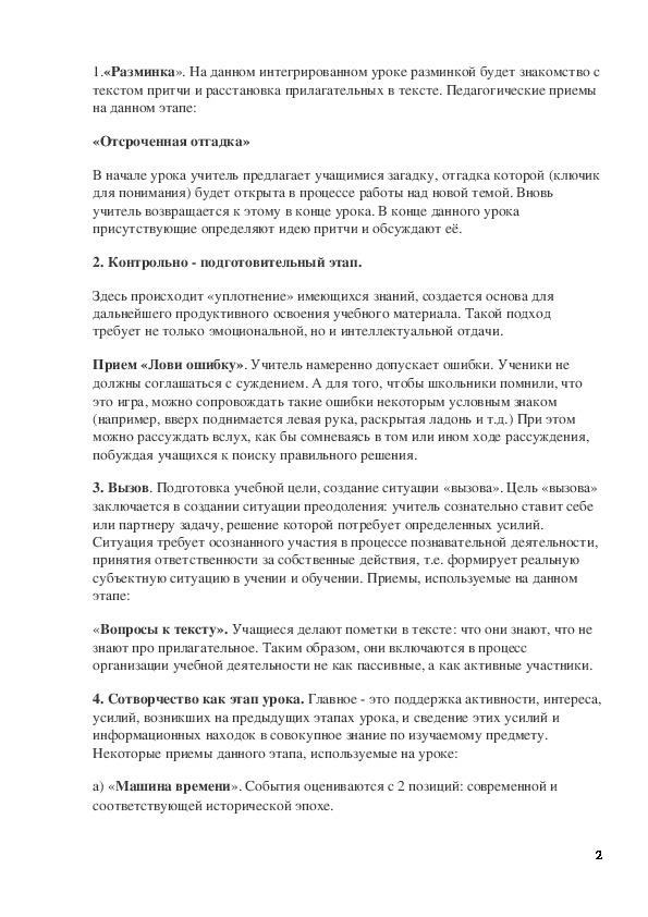 усилий, возникших на предыдущих этапах урока, и сведение этих усилий и