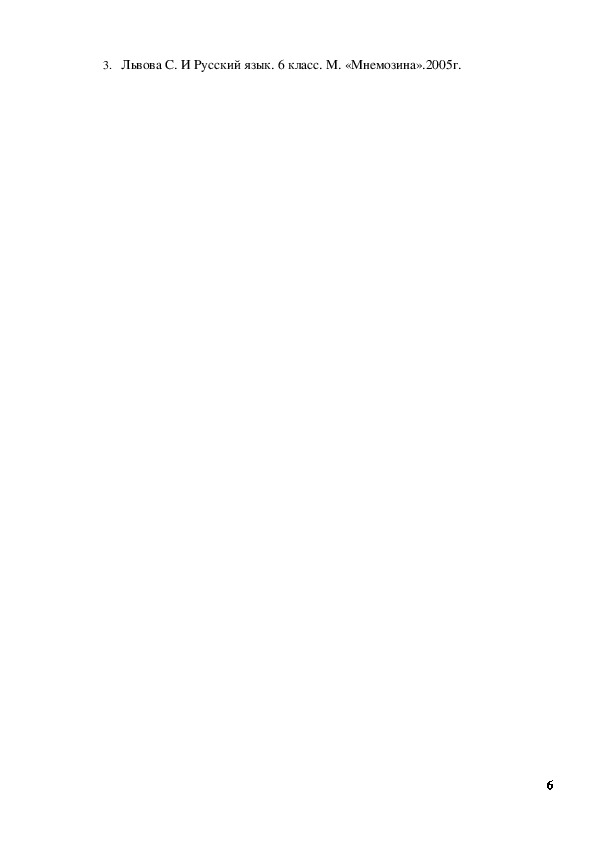 2. Богданова Г.А. Уроки русского языка в 6 классе. М. «Просвещение»