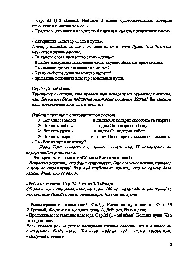 4. Воспитание трудолюбия, толерантности.Сценарий урока "Православное учение о человеке" 4 класс