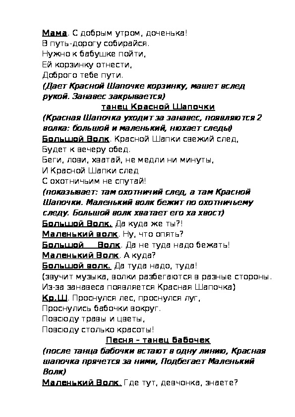 Действующие лица: Вед., Мама, Красная Шапочка,