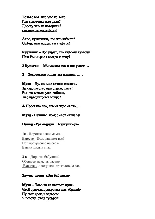 Звучит песня «Без бабушки»