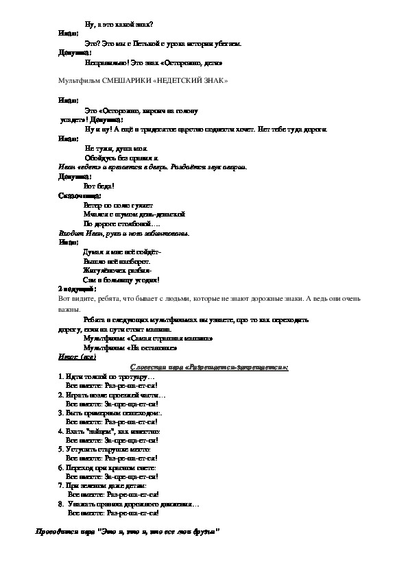 Сценарий выступления агитбригады ЮИД «Дорожный Ералаш»
