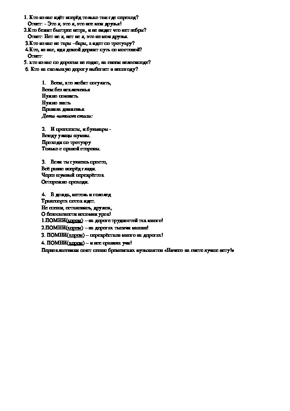 3.Кто из вас не тары –бары, а идет по тротуару?