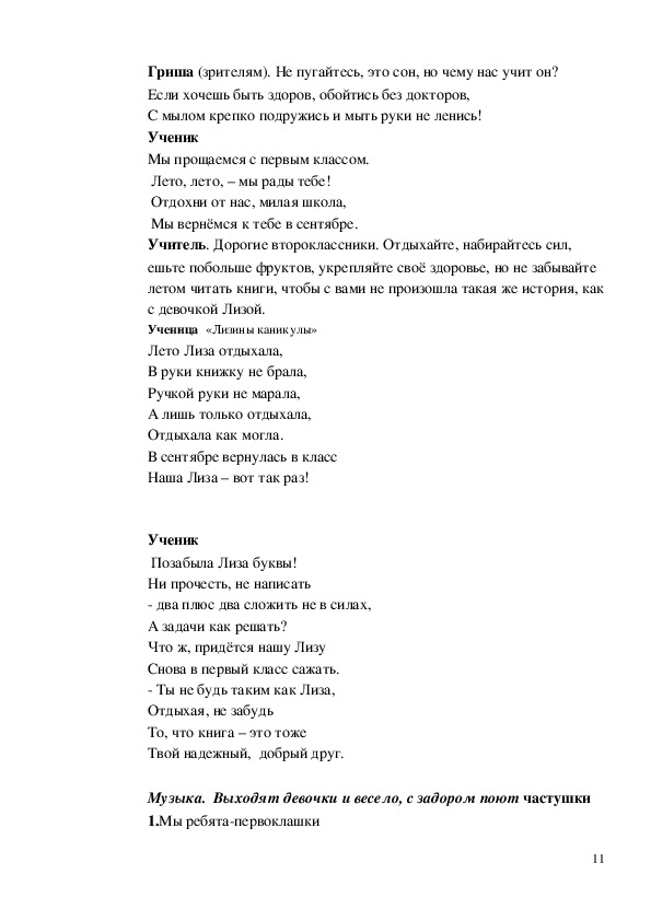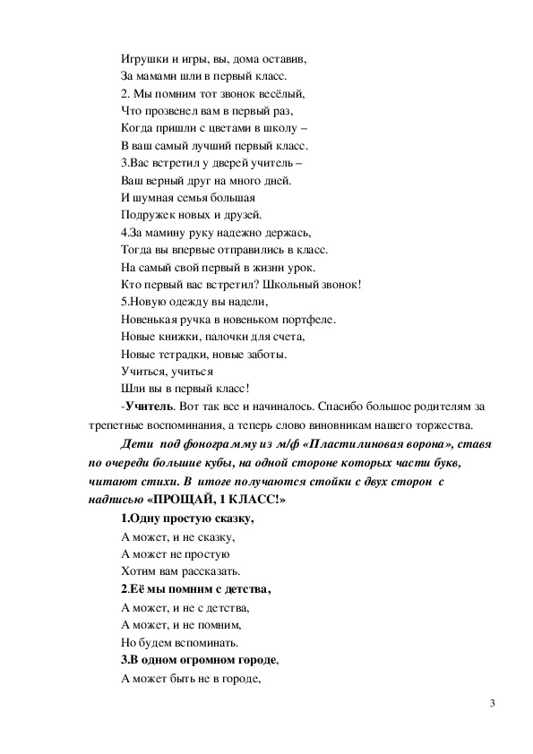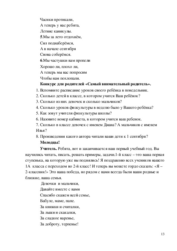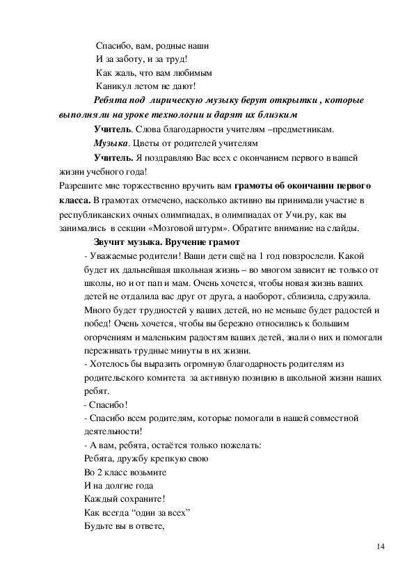 Учитель. Ребята, вот и заканчивается наш первый учебный год. Вы