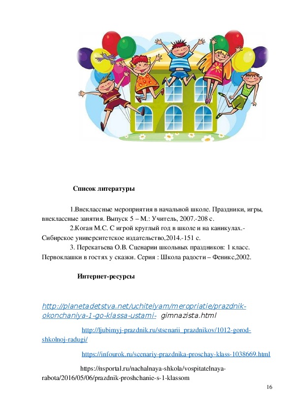 3. Перекатьева О.В. Сценарии школьных праздников: 1 класс.