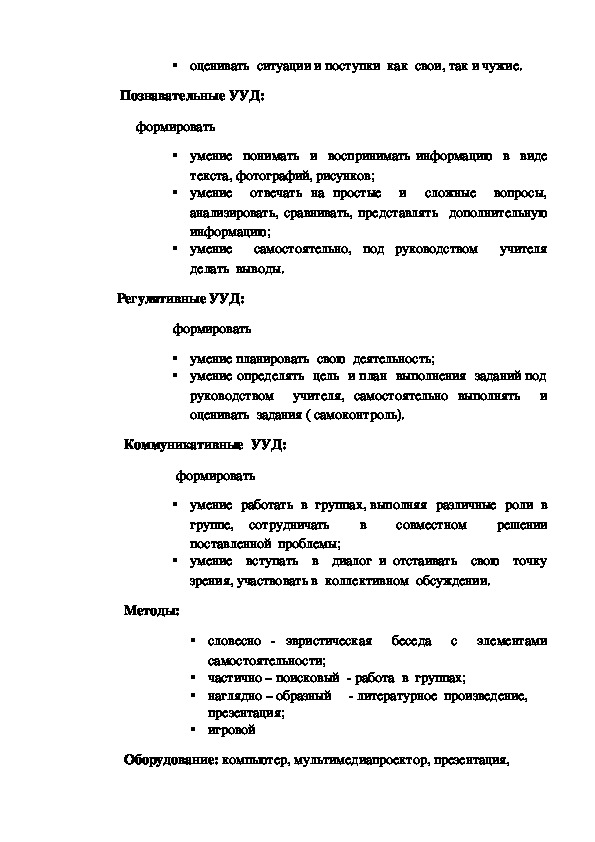 занятии, перемене; оценивать ситуации и поступки как свои, так и чужие.