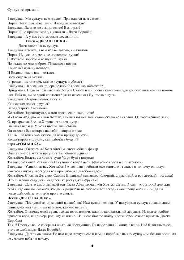 В нем идет все по порядку: танцы, игры и загадки,