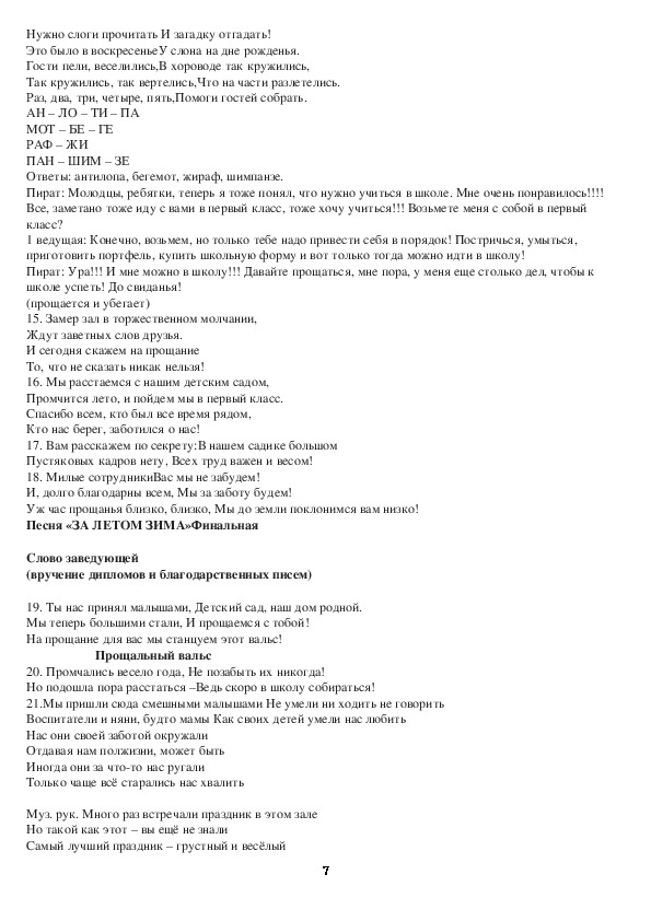 Пират: Ура!!! И мне можно в школу!!! Давайте прощаться, мне пора, у меня еще столько дел, чтобы к