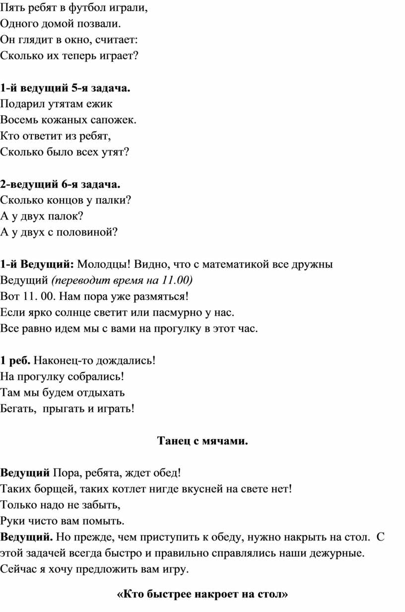 2 –Ведущий. Каждый день у нас, ребятки, начинается…..