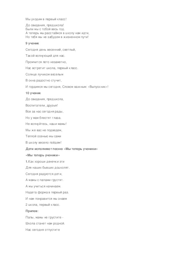 А теперь мы расстаёмся в школу нам идти,