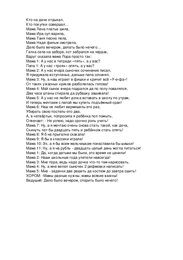 Мама 4: Ну, а мне велел сыночек 2 рифмовки написать!
