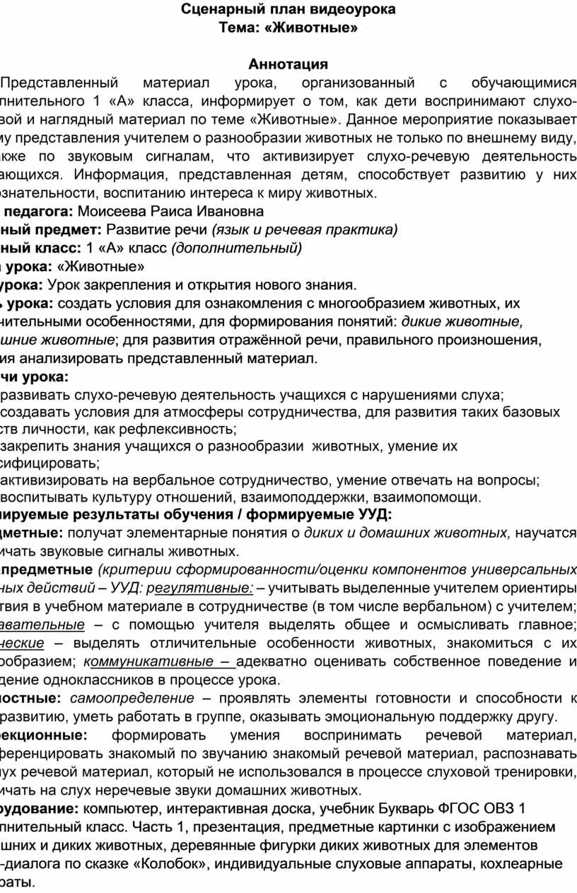 Представленный материал урока, организованный с обучающимися дополнительного 1 «А» класса, информирует о том, как дети воспринимают слухо-речевой и наглядный материал по теме «Животные». Данное мероприятие показывает форму представления учителем о разнообразии животных не только по внешнему виду, а также по звуковым сигналам, что активизирует слухо-речевую деятельность обучающихся. Информация, представленная детям, способствует развитию у них любознательности, воспитанию интереса к миру животных.
