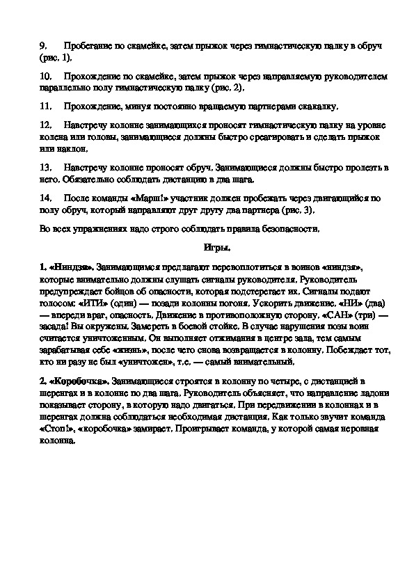 1. «Ниндзя». Занимающимся предлагают перевоплотиться в воинов «ниндзя»,