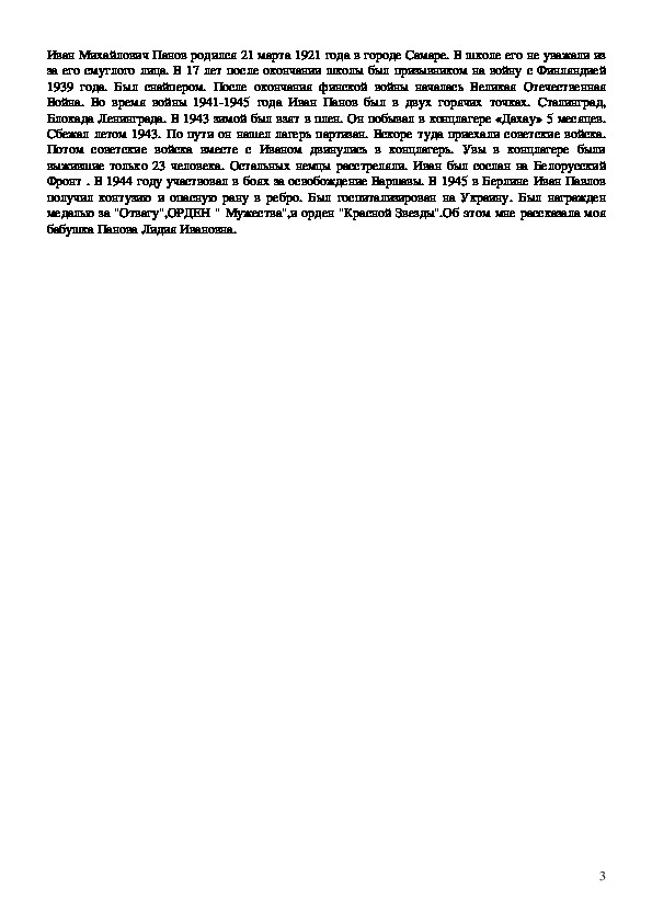 2Иван Михайлович Панов родился 21 марта 1921 года в городе Самаре. В школе его не уважали из