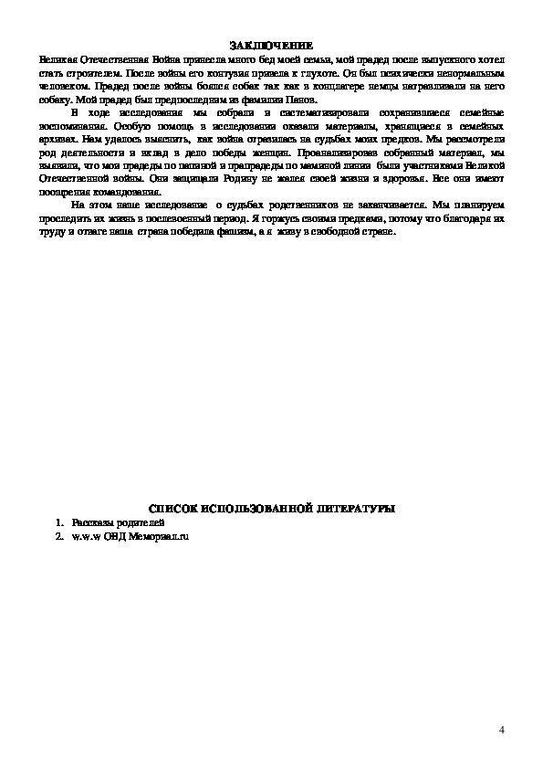 В ходе исследования мы собрали и систематизировали сохранившиеся семейные