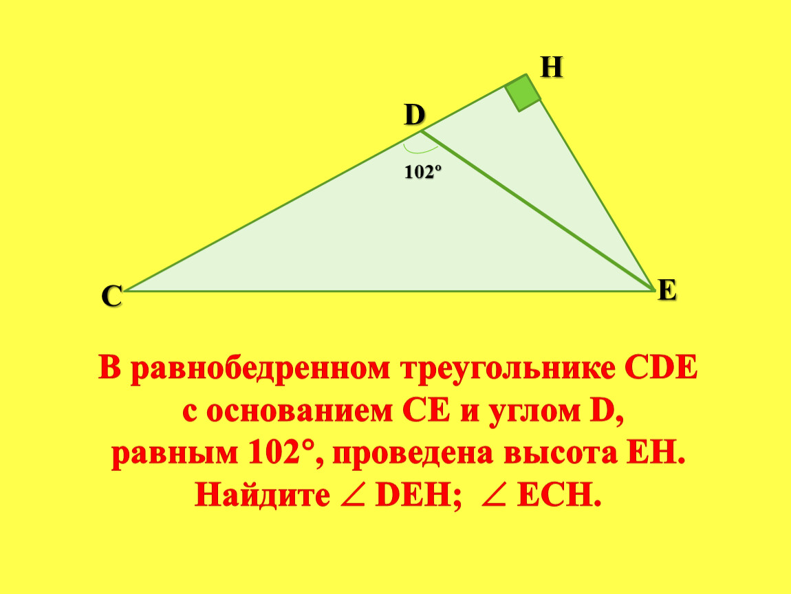равным 102, проведена высота ЕН. Найдите DЕН; ЕCН.